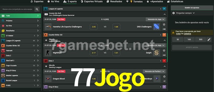 O 77Jogo oferece uma grande seleção de opções de apostas em e-sports com probabilidades competitivas